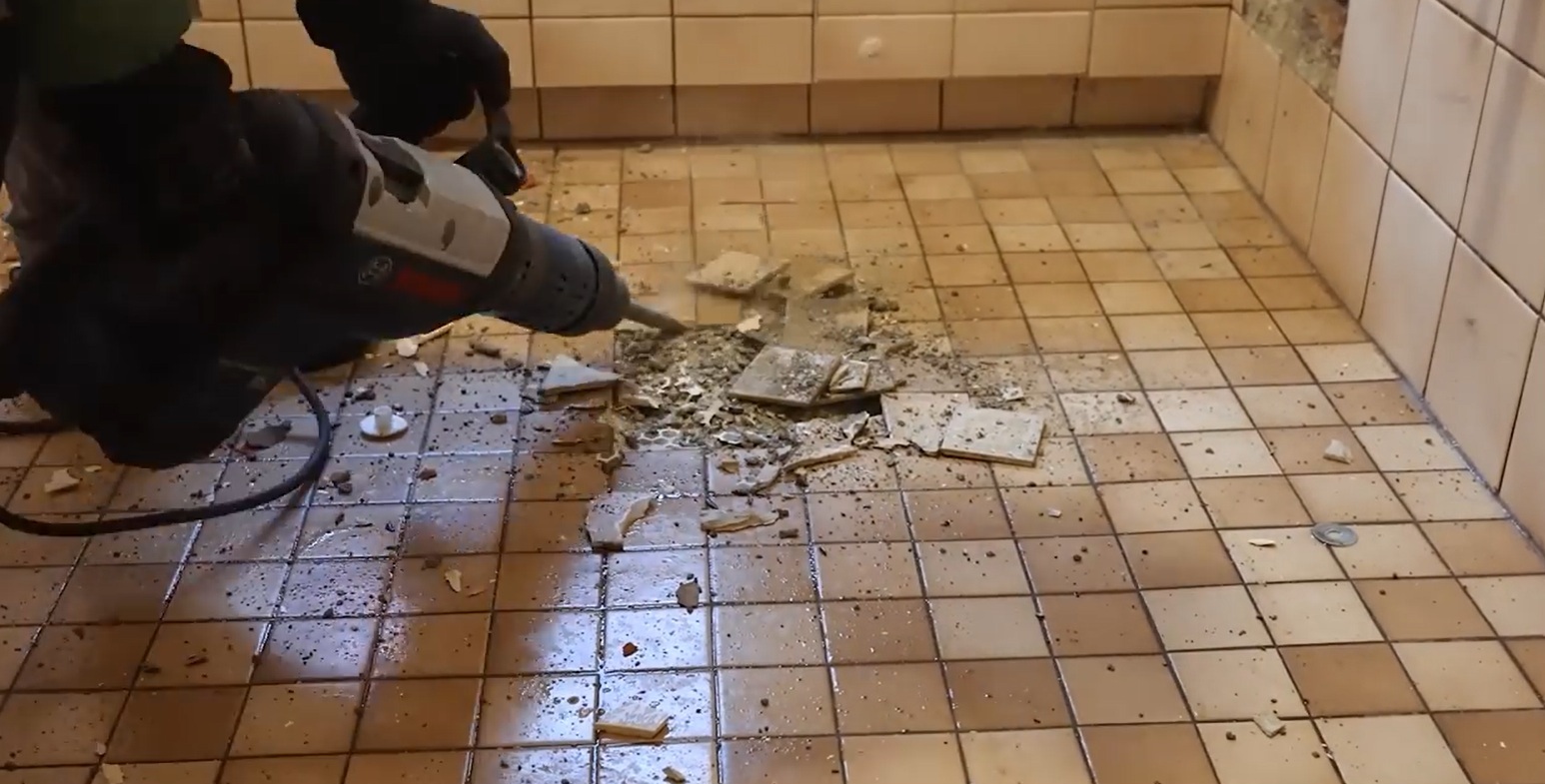 demontáž pôvodnej kuchynskej linky, obkladov a pracovnej dosky,
