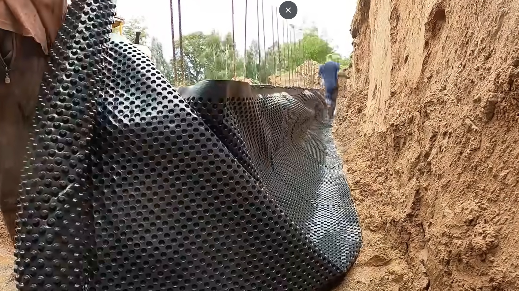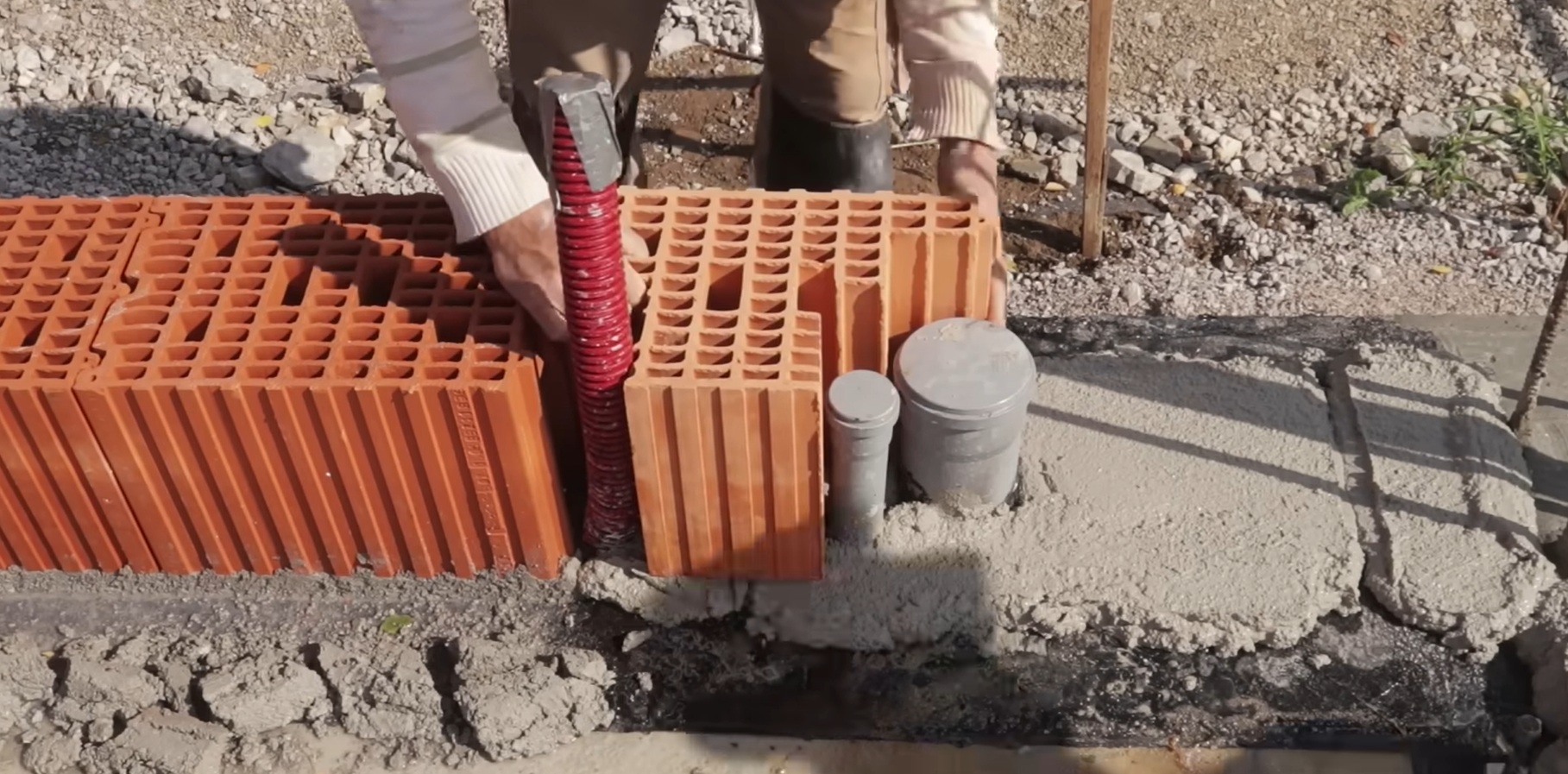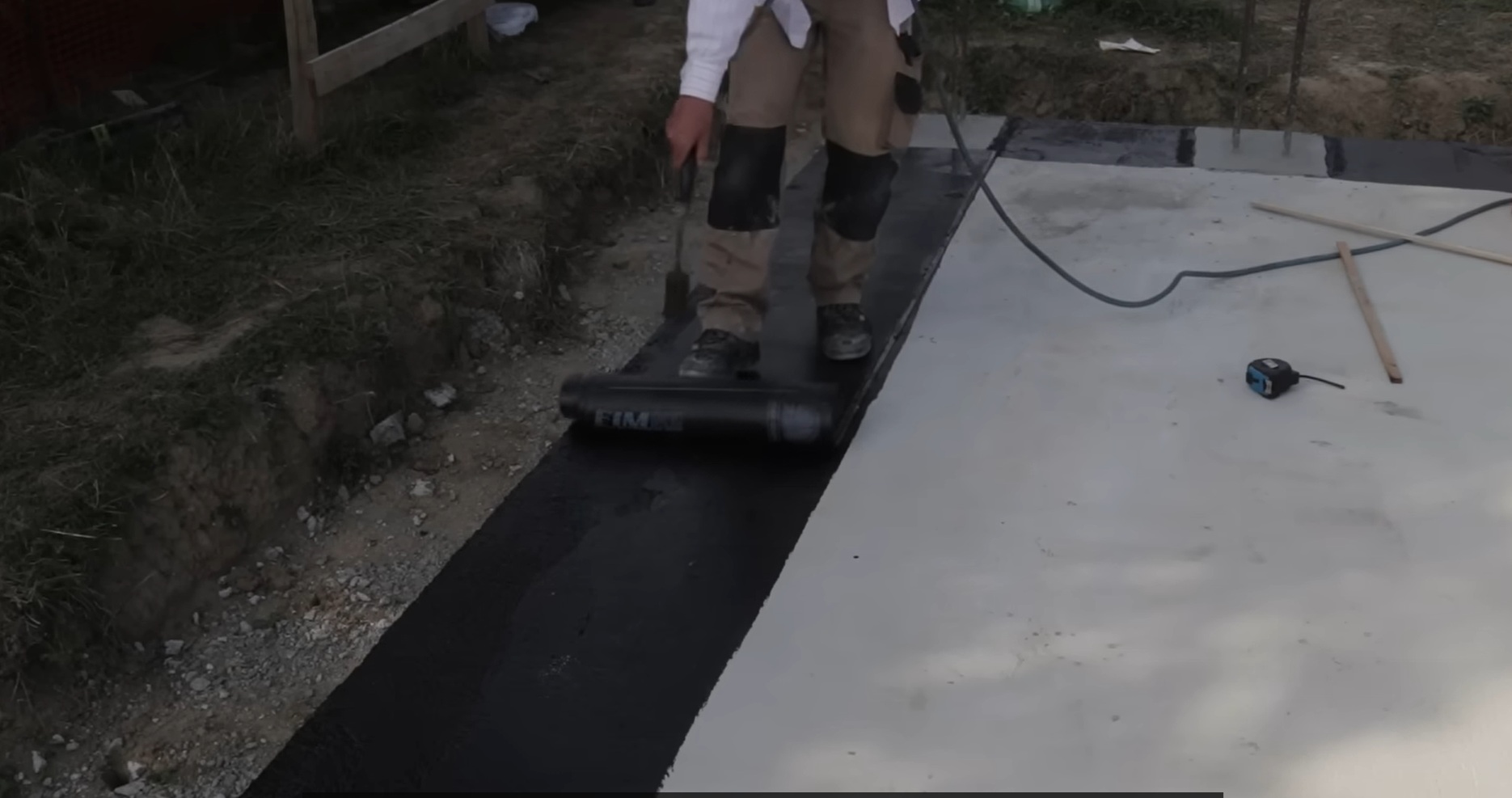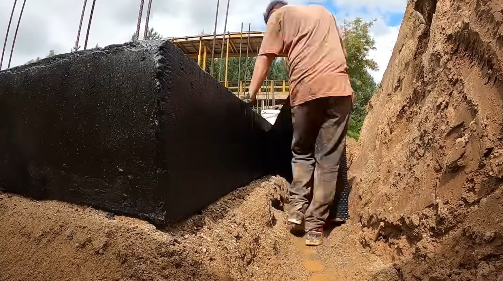 aplikáciu hydroizolácie a nopovej fólie, drenážne rúrky a štrkový obsyp,